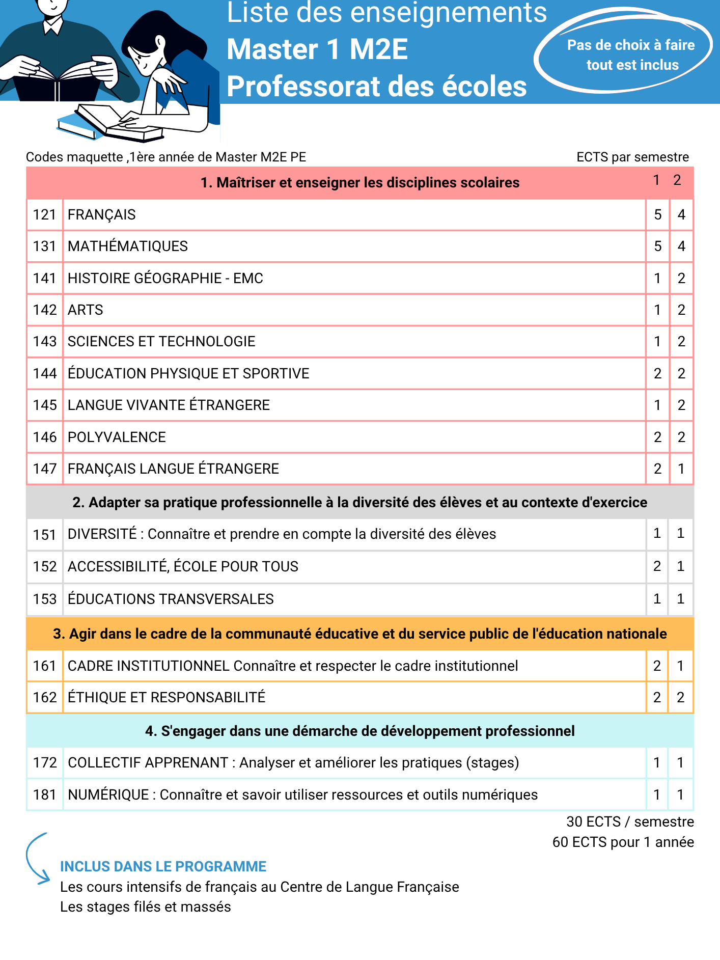 Vous pouvez venir étudier à l’INSPÉ de l’académie de Versailles, pour 1 ou 2 semestres (30 ECTS / semestre) en 1ère de master M2E sur le site de formation de Cergy Saint-Martin (sur nomination, places soumises à disponibilité).