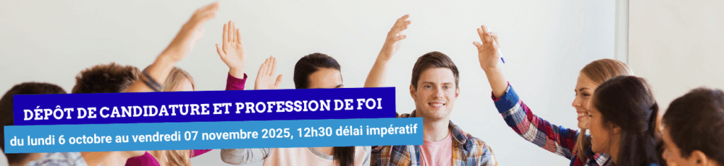 📅 Le dépôt des candidatures et profession de foi aura lieu du lundi 6 octobre au vendredi 07 novembre 2025 , 12h30 délai impératif.
