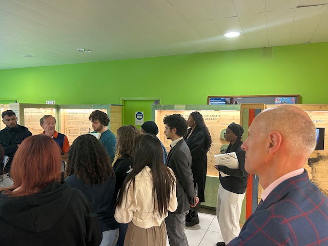 Après cette journée de formation, une première mise en pratique, supervisée par les Messagers a eu lieu. Entre appréhension et motivation, les étudiants se sont lancés à partir des panneaux de l’exposition et ont guidé leurs pairs, des camarades de licence, puis plus tard de master (ainsi que des étudiants en journalisme présents sur le campus).