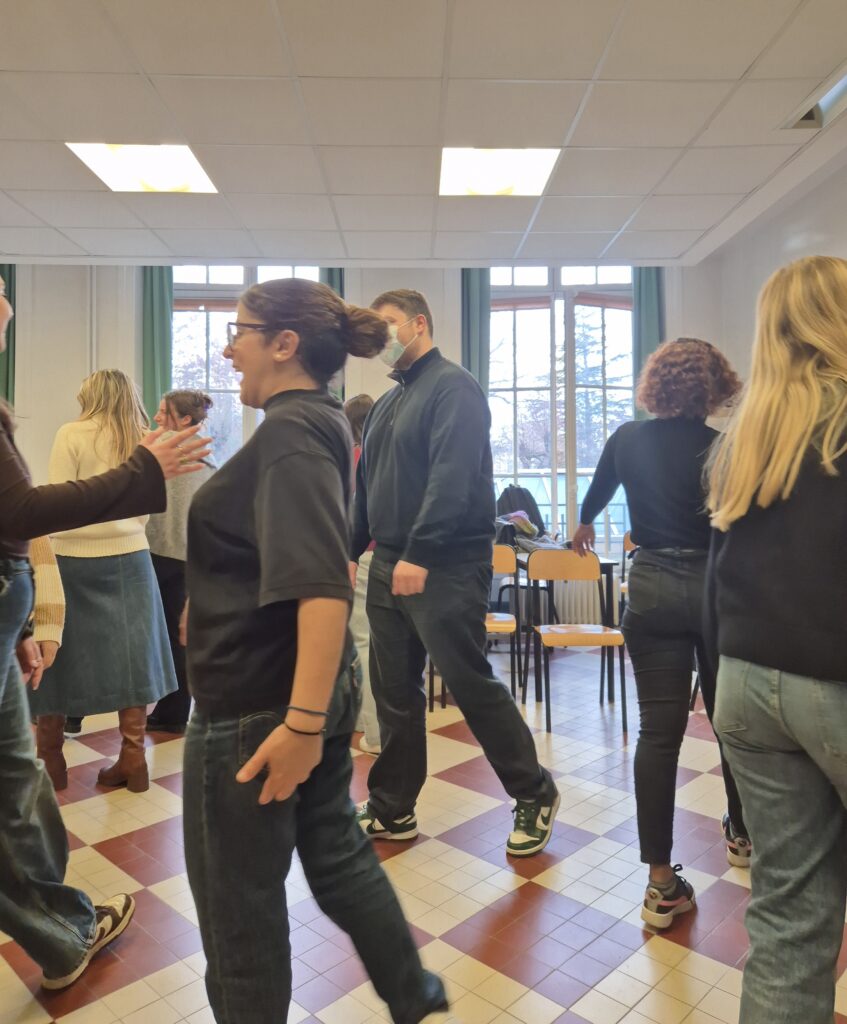 Un peu surpris et étonnés en début de séance, nos futurs enseignants se sont vite inscrits dans les propositions d’Héloïse. La découverte des 7 niveaux de tension et leur expérimentation a été un moment fort pour nos étudiants. Ils ont pris conscience qu’identifier le niveau de tension de l’autre n’est pas toujours aisé. Il est pourtant primordial pour des enseignants de savoir identifier les émotions et leurs manifestations chez leurs élèves.