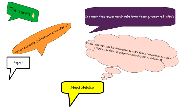 L’intervention d’Héloïse nous a beaucoup plu, nous étions tous ravis. Cette expérience nous a permis de relâcher beaucoup de pression, de nous exprimer autrement et d’interagir d’une manière différente entre collègues. Nous leur avons demandé leur avis sur cette expérience, et voici quelques réponses :