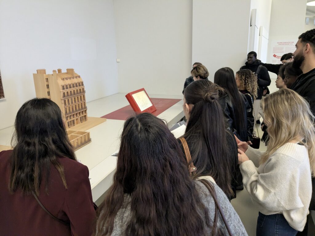 • une visite de la collection permanente et plus particulièrement de la partie Architecture moderne, menée par une guide-conférencière qui a amené les étudiants à voir l’évolution dans les habitations franciliennes depuis les rénovations haussmanniennes.