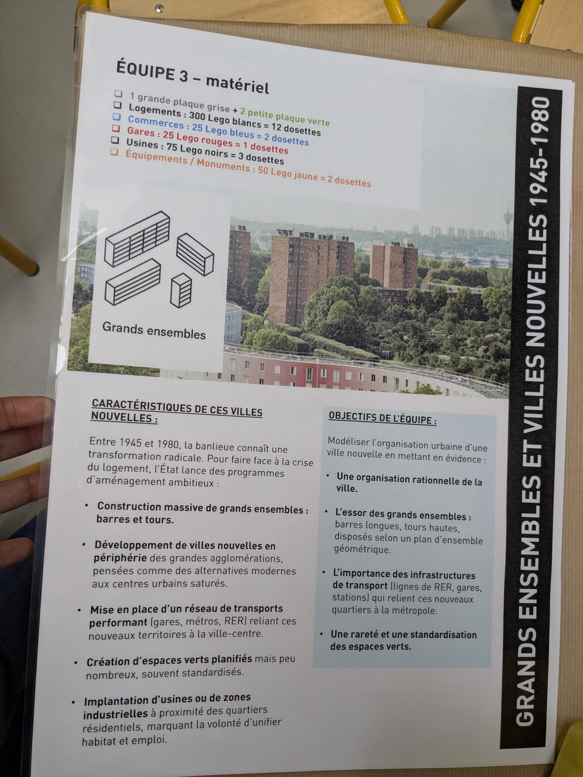 Cette fois les étudiants ont eu la mission, par petits groupes, de construire une ville à l’aide des célèbres briques LEGO en respectant le cahier des charges imposé par le contexte des villes nouvelles. Une bonne façon de prendre du recul sur l’environnement dans lequel on habite et de tenter de faire mieux que les urbanistes.